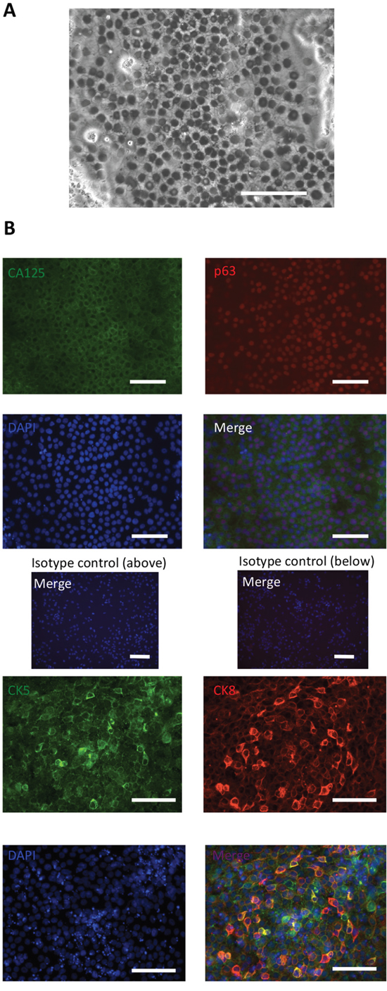 IM-derived cells generated with Keratinocyte-SFM on collagen IV-coated plates express reserve cell markers, squamocolumnar (SC) junction markers and the Müllerian duct-derived cell marker CA125