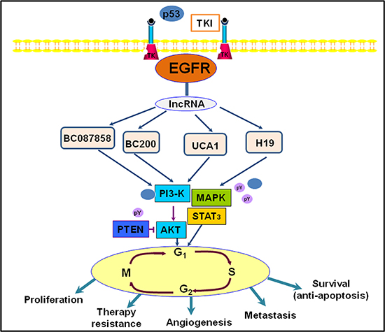 87. Cheng N, Cai W, Ren S, Li X, Wang Q, Pan H, Zhao M, Li J, Zhang Y, Zhao C, Chen X, Fei K, Zhou C, et al. Long non-coding RNA UCA1 induces non-T790M acquired resistance to EGFR-TKIs by activating the AKT/mTOR pathway in EGFR-mutant non-small cell lung cancer. Oncotarget. 2015; 6:23582–23593. doi: 10.18632/oncotarget.4361.