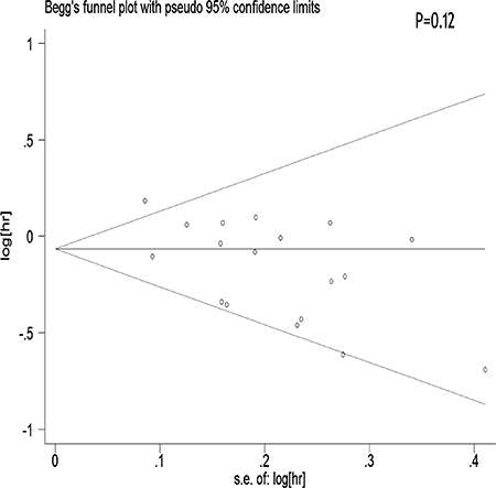 We performed a meta-regression analysis to test the study design and geographic area. We found that study design (47.90%) and geographical region (44.60%) was statistically significant in the multivariate model (Figure 4A, 4B). Interpretation of Figures 5 and 6 revealed no support for publication bias. Furthermore, Begg’s and Egger’s tests (all P > 0.01) indicated no evidence of publication bias among studies (Figures 5 and 6).