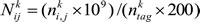 in which Nkij represents normalized signal, nkij is the total tags that k-th TF locates in the j-th bin of the i-th gene, 109 is used to eliminate the difference of magnitude with RPKM. 200 is the length of the j-th bin, and nktag is the total tags of the k-th TF. This results in a 19120×100 matrix N (matrix element is Nkij (i = 1, 2,…,19120; j = 1,2,…,100; k = 1,2,…,15) for the k-th TF.