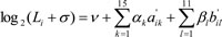 in which Li is the RPKM value of the i-th gene, σ is a pseudocount, υ is the intercept, αk and βl are the regression coefficients.