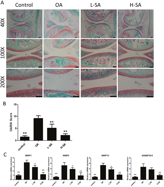 Effect of SA on anterior cruciate ligament transection (ACLT)-induced OA