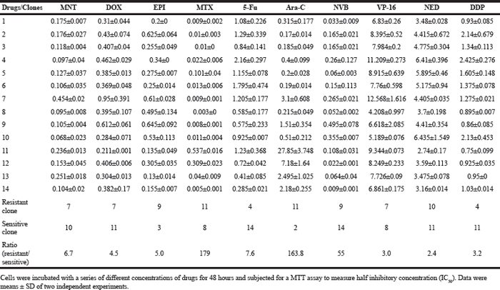Table 1: IC50 (μg/ml) of clones from 4T1