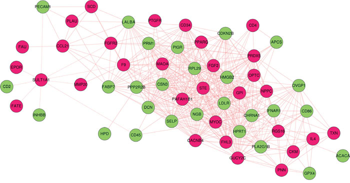 We calculated gene expression correlation coefficient of every two selected shared genes, and kept gene pairs with correlation coefficient higher than 0.8 to construct gene co-expression network. Network was visualized by Cytoscape 2.8.0 software [32].