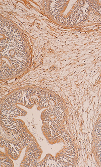 The characteristics of IP are now universally accepted: it is almost always unilateral, usually originates from the side wall of the nose, is more common in men than women (ratio of 4:l approximately), the highest incidence occurs in the sixth and seventh decades of life. Although IP is benign, it may be confused with a variety of other pathologies such as inflammatory polyps, respiratory epithelial adenomatoid hamartoma and low-grade adenocarcinomas [15–16]. The recognition of this entity is important as complete endoscopic excision is curative. The current limit of such an approach can be represented by a widespread involvement of a hyperpneumatization of frontal sinus, or lesions affecting the intracranial and infraorbital regions. In these circumstances, radical surgery can be better guaranteed by an external approach. These tumors also have a tendency to recur, are locally destructive and have significant association with squamous cell carcinoma (2% to 26% with an average of 9.2%) [17]. The significantly higher incidence in males suggests possible sexual hormone dependence. Only two studies in 1994 and 1998 studied the expression of sex hormones receptors on limited number of case histories are reported in the literature [18–19]. The analysis of these studies showed the absence of PGR-ER receptor expression or weakly positive for PR. Even if IP is about four times more common in men than in women, we obtained a comparable number of samples from both sexes to eliminate the male bias in receptor expression. After making this initial selection, the tissue samples analyzed were randomly obtained.
