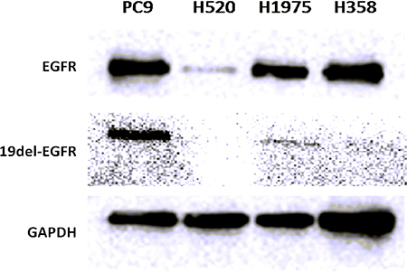 Figure 5: Western blot of EGFR and 19del-EGFR expression level in 4 NSCLC tumors.