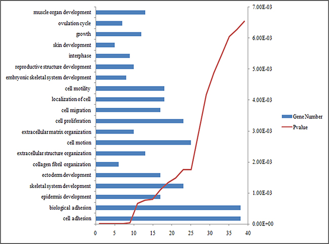 Figure 2: The top 20 most significantly enriched GO terms of DEGs according P value.