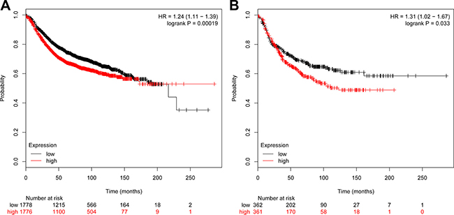 KM Plotter (http://kmplot.com/analysis/) is used for the meta-analysis based biomarker analysis in this paper [35] which analysed more than thousands of gene expression samples of breast cancer patients, was used to work out Kaplan–Meier survival evaluation to further assess the relationship of DEGs and prognosis. In the survival evaluation quartiles were used as cutoff values and it was set at p under 0.05.