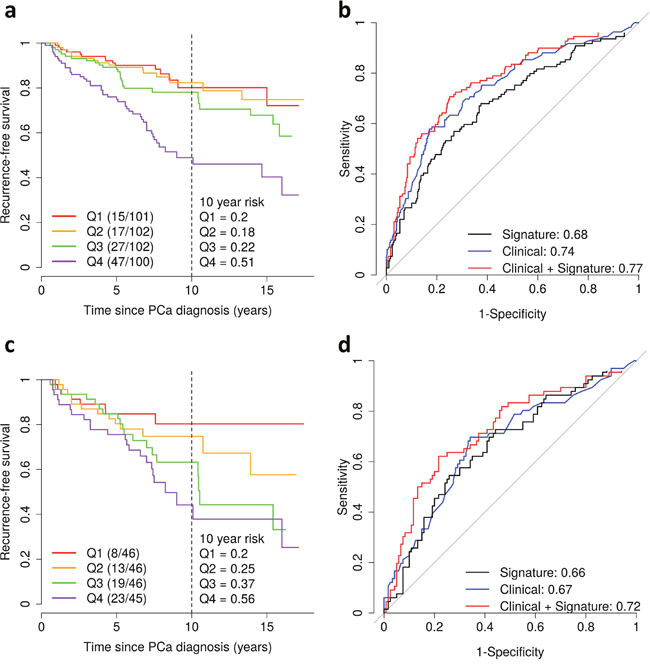 23. Karnes RJ, Bergstralh EJ, Davicioni E, Ghadessi M, Buerki C, Mitra AP, Crisan A, Erho N, Vergara IA, Lam LL, Carlson R, Thompson DJ, Haddad Z, et al. Validation of a genomic classifier that predicts metastasis following radical prostatectomy in an at risk patient population. J Urol. 2013; 190: 2047-53. doi: 10.1016/j.juro.2013.06.017.