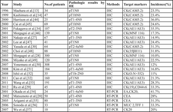 Table 1: IHC and RT-PCRl studies in gastric cancer patients with node negativity diagnosed by HE staining.