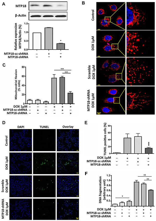 Knockdown of MTP18 interferes with DOX-induced mitochondrial fission as well as apoptosis