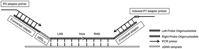 Figure 7: RT-MLPSeq probes design. P5 adaptor primer contained identical sequences of illumina P5 Sequence and 5’ universal adaptors while indexed P7 adaptor primer had reverse-complemental sequences of illumina P7 and 3’ universal adaptor as well as 8Nt index.