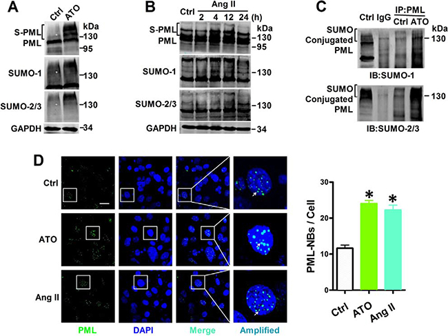 Both ATO and Ang II promoted PML SUMOylation and PML-NBs accumulation