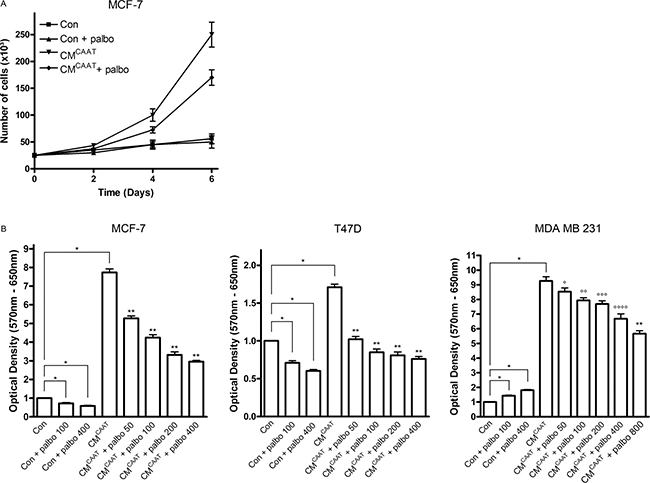 Impact of palbociclib on CAAT enhanced breast cancer cell proliferation