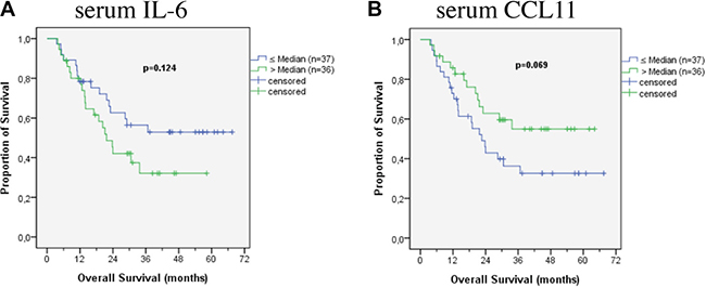 Results are promising but further studies including sequential measurements of cytokine levels are necessary to illuminate their complex network of the tumor microenvironment.