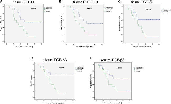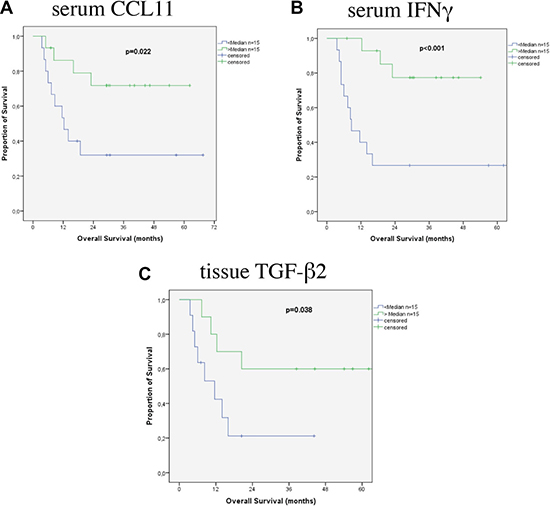 Figure 2: Survival according to cytokines in patients’ tumor tissue.