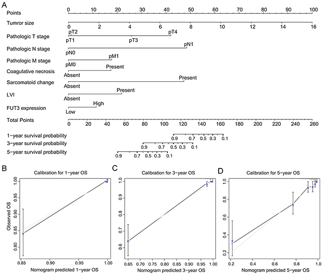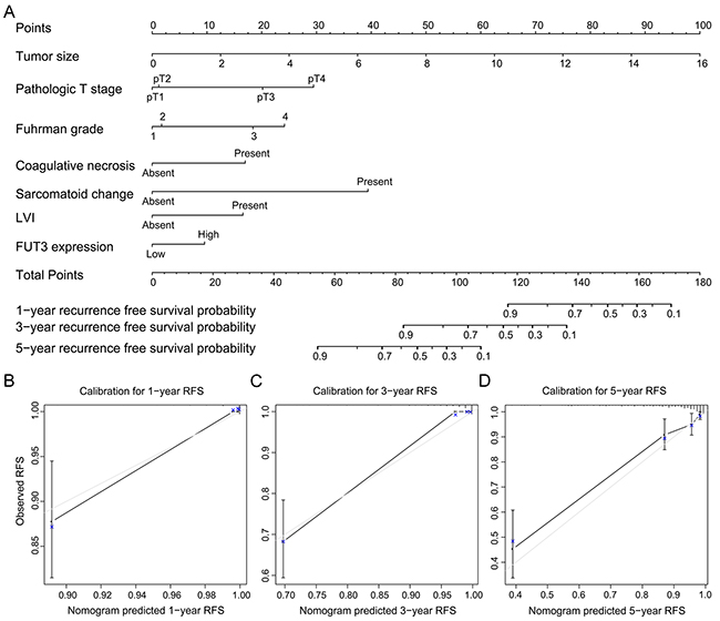 Our study confirms the significance of FUT-3 expression for patients with ccRCC. The high expression of FUT3 can predict poor prognosis of ccRCC patient. Furthermore, we built nomogram models for OS and RFS of ccRCC patients and confirm the models with calibration. In addition, we combine the built-up models and the expression of FUT-3 to improve the predictive accuracy.
