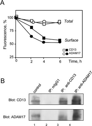 MY7-mediated CD13 and ADAM17 internalization in U937 cells - CD13/ADAM17 association