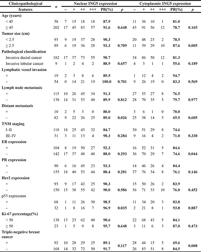 The correlation of ING5 expression with the pathobiological behaviors of breast cancer