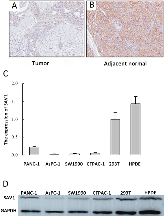 SAV1 expression in pancreatic cancer tissues and cell lines