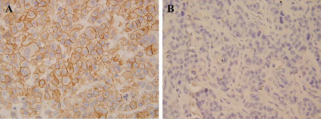 Figure 1: Immunohistochemical analysis revealed that cervical cancer tissue had stronger CCL19 expression compared with that of corresponding adjacent noncancerous tissues.