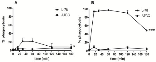 Only L-78 was efficiently phagocytosed by human monocytes and macrophages