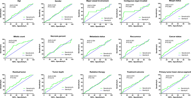 Since the most life-threatening aspect of soft-tissue sarcomas is their capacity to disseminate hematogenously. We were also interested in the effect of each lncRNA on the metastasis. However, there was no significant difference of the level of these lncRNAs between metastatic and non-metastatic sarcomas. Regarding to ROC analysis, only RP4-665J23.1 conferred a mild diagnostic value for metastasis in soft-tissue sarcomas (AUC=0.615, P = 0.0146, Supplementary Table 2 in Supplementary Information).