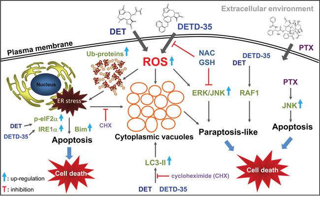 DET- or DETD-35-induced ROS mediates cytoplasmic vacuolation-associated cell death