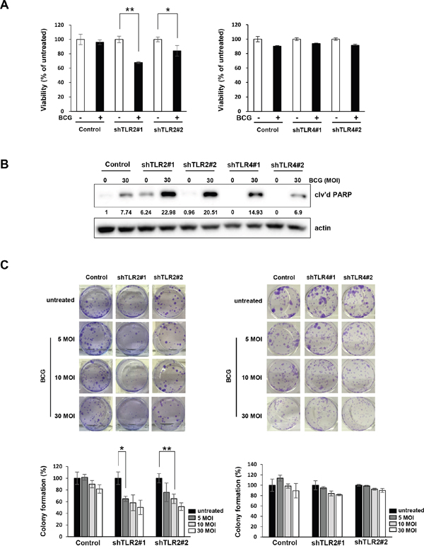 TLR2-knockdown cells are more sensitive to BCG treatment