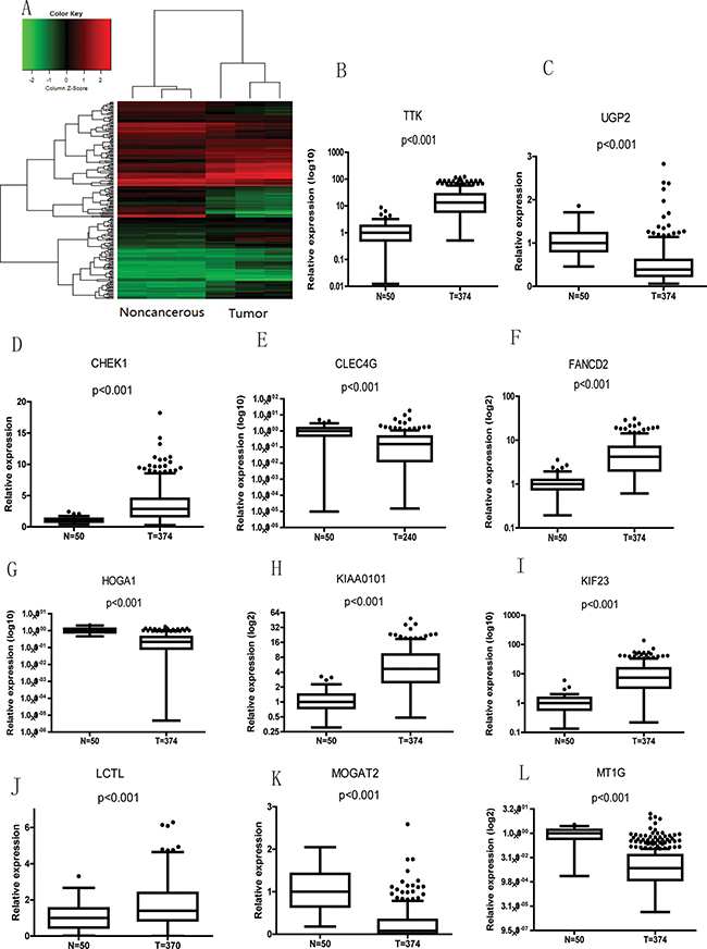 Next, hierarchical clustering was performed to analyze the patterns of lncRNAs and coding genes in HCC and noncancerous tissue (Figure 1F). Distinguishable lncRNA and mRNA profiling between HCC and noncancerous tissue were observed.