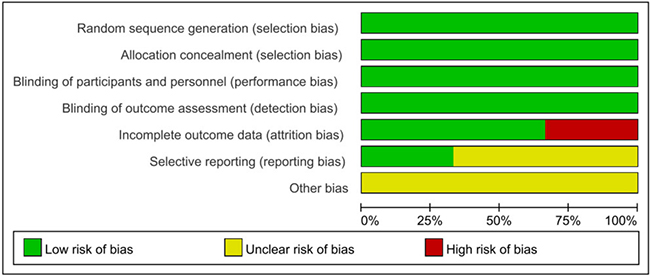 Figure 5: Risk of bias graph: review authors' judgements about each risk of bias item presented as percentages across all included studies.