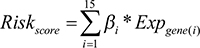 To measure the effectiveness of the 15 breast cancer risk genes in survival prediction together, we construct a risk score with these 15 genes for each patient. The method we used to calculate the risk score is the same with a published paper [33]. Briefly, the formula considered both the direction and the power of genes in cancer risk and also took the expression into account. The risk score for each patient can be calculated as follows: