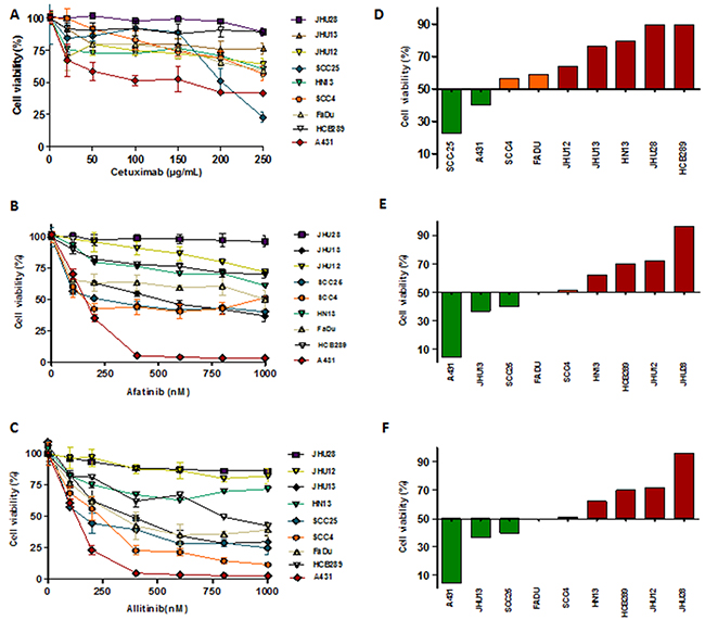 Viability effect of cetuximab, afatinib and allitinib in hnscc cell lines