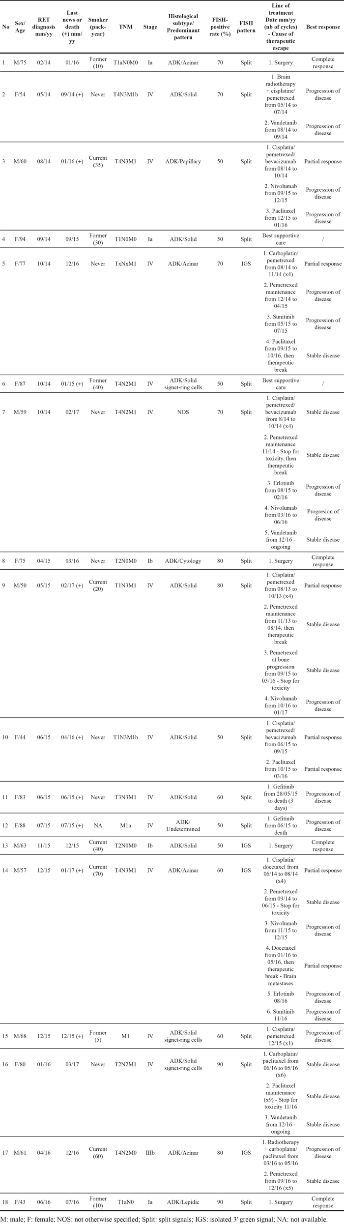 Table 1: Clinicopathological characteristics of ROS1- and RET-rearranged patients