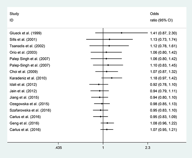 Figure 2: Meta-analysis of the association between MTHFR C667T and PCOS.