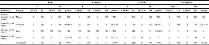 Table 2: EBV strains in healthy donors (HD) and EBV-associated gastric carcinoma in the Americas