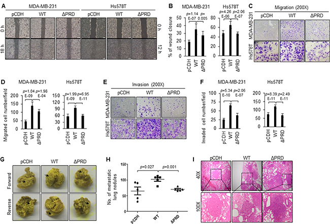 Induced expression of wild-type MORC2, not PRD deletion mutant MORC2, promotes breast cancer cell migration, invasion, and metastasis