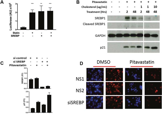 Pitavastatin induced p21 expression and growth inhibition are SREBP1 independent