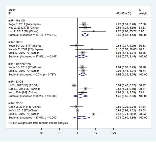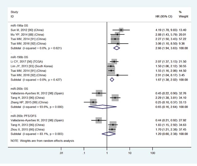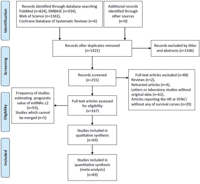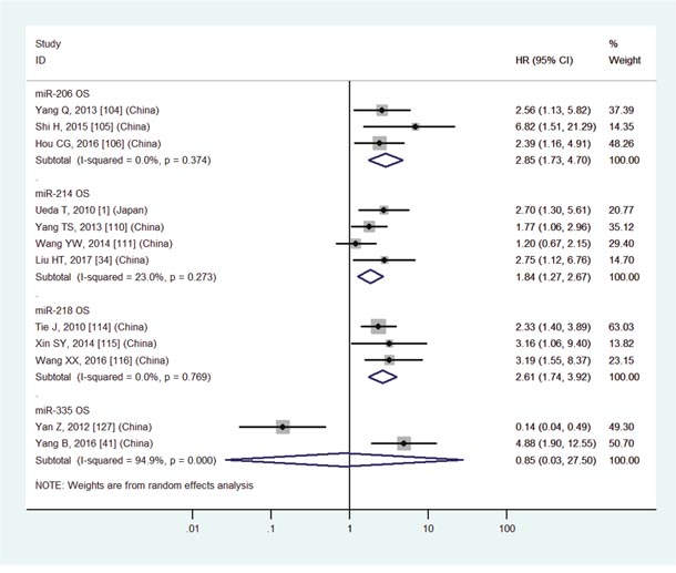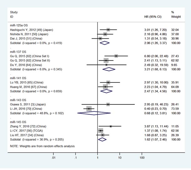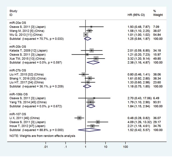 In GC research area, quite a number of investigations have demonstrated that miRNAs are associated with survival time of patients [1–167]. However, the number of patients during the articles mentioned above is generally not big enough. Therefore, a systematic review and meta-analysis was performed for the sake of better understanding accurate prognostic value between expression levels of numerous miRNAs and HR of GC patients.