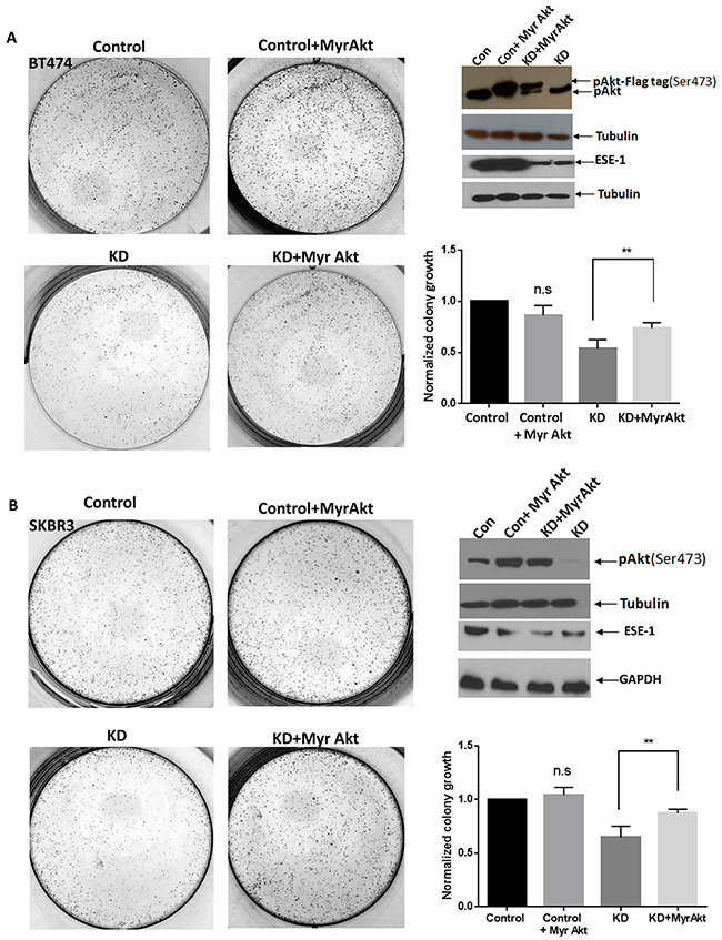 Constitutively active Akt rescues colony formation in ESE-1 knockdown BT474 and SKBR3 cells