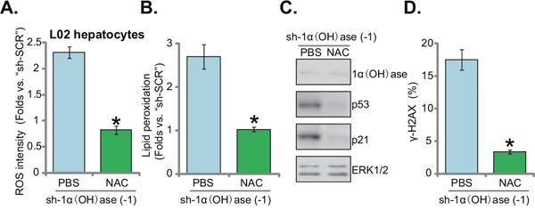 N-acetylcysteine blocks ROS production, p53-p21 activation and DNA damage in 1α(OH)ase-silenced L02 hepatocytes