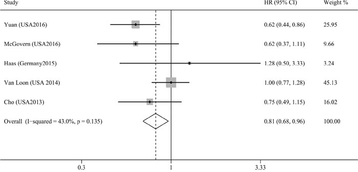 In conclusion, our results indicate that high plasma 25(OH)D levels was significantly associated with favorable survival for pancreatic cancer patients. No significant associations were observed between vitamin D intake or plasma 25(OH)D levels and pancreatic cancer risk. It is should be noted that most studies were confined to USA, which may impact the generalization of present results for pancreatic cancer worldwide. Further large-scale multicenter studies are required to assess the protective effect of vitamin D for pancreatic cancer patients worldwide.
