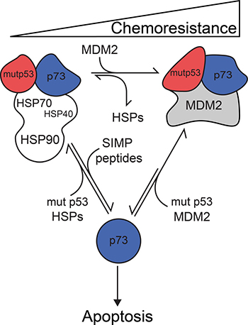 Elevated levels of MDM2 release chaperones from mutant p53-TAp73α complex and induce the formation of a three-body mut p53-TAp73α-MDM2 complex, which augments cancer cell chemoresistance
