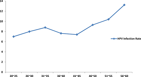 Figure 1: Relation between age and HPV infection rate among Karakax Uyghur women.