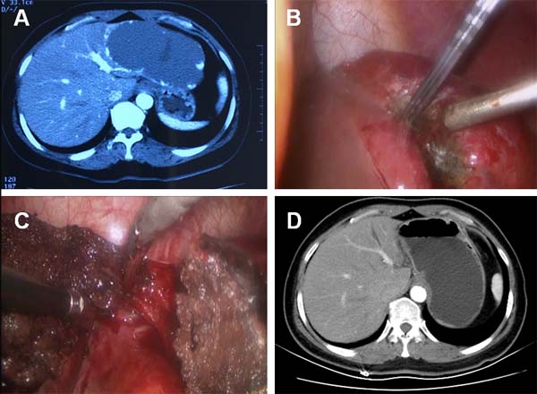 Open hepatic resection is conventionally the first choice of treatment for symptomatic enlarging hepatic hemangiomas. Despite its well-recognized effectiveness, hepatic resection of hemangiomas usually requires a large abdominal incision and is associated with substantial recovery time and morbidity [3]. In recent years, the well-developed surgical technique of laparoscopic resection has provided great opportunities for treating hepatic hemangiomas in a minimally invasive fashion [4-8]. However, great technical challenges still exist in treating a hemangioma with a size greater than 10.0 cm, which is usually regarded as a relative contraindication due to the lack of sufficient manipulating space and the potential risk of massive intraoperative blood loss [9].