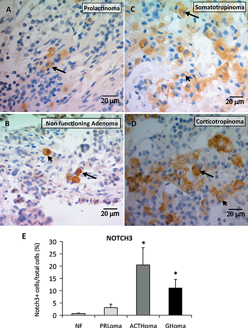 Notch3 and Jagged1 were also overexpressed in human clinically non functioning pituitary adenomas compared to normal pituitary gland [46, 47], while no significant differences were determined for prolactin or growth hormone secreting adenomas in that study [46].