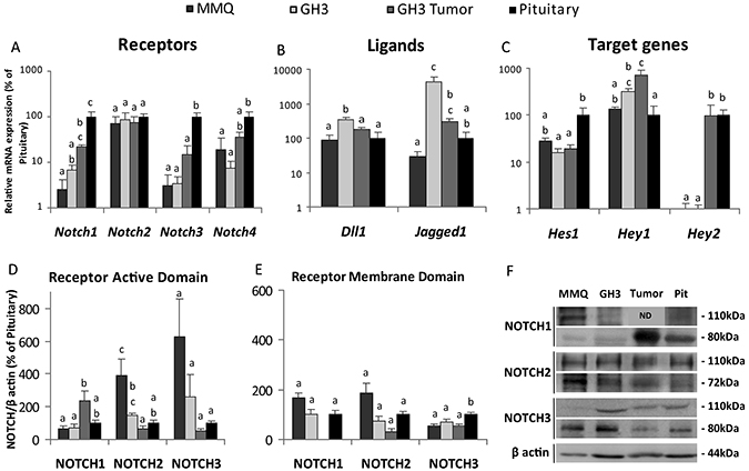 Therefore, in the present study we decided to evaluate the expression of the different Notch receptors and other components of the system in a comparative manner in tumoral and normal pituitaries in human and rodent samples. In this way, we aimed to elucidate Notch system significance in pituitary tumor development in search of new targets for the treatment of adenomas with resistance or intolerance to pharmacological therapy in which no alternatives exist other than pituitary surgery.