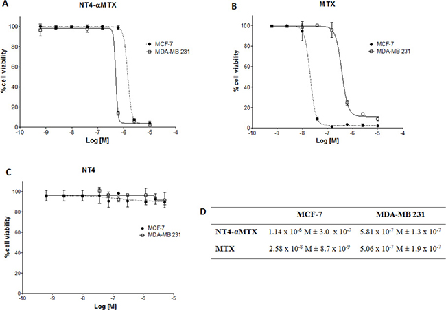 Cytotoxicity of free and NT4-conjugated MTX in human breast cancer cell lines