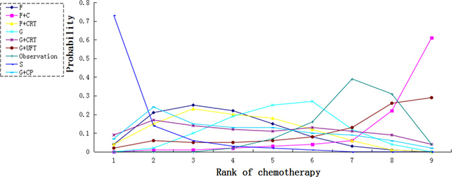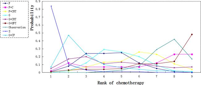 In conclusion, our network meta-analysis suggest that S-1 is the optimum adjuvant chemotherapy for both short and long term survivals in Asian patients with pancreatic cancer after resection, this results need to be assessed in non-Asian patients. Gemcitabine plus capecitabine also has promising outcomes for these patients accompanied with high toxic events. Chemotherapy plus fluorouracil or gemcitabine is inferior to fluorouracil or gemcitabine alone in terms of overall survival and toxic effects.