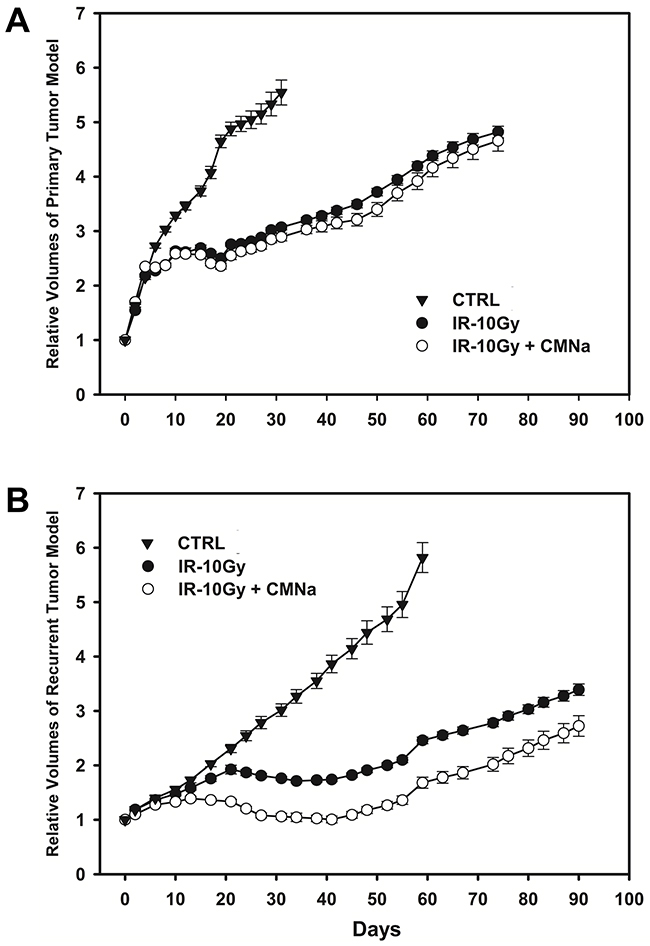 Radiosensitizing effect of CMNa in the primary and recurrent tumor models
